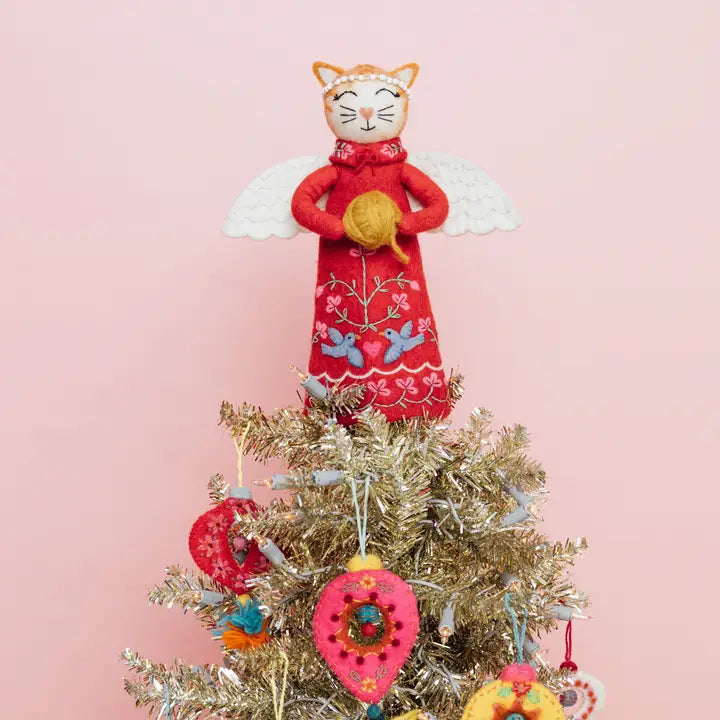 Make your cat the star of the holiday with our Cat Tree Topper! This playful topper adds a quirky and fun touch to your decorations. A purr-fect way to celebrate the season as a cat lover! 100% Wool. Handmade in Nepal. 11" tall