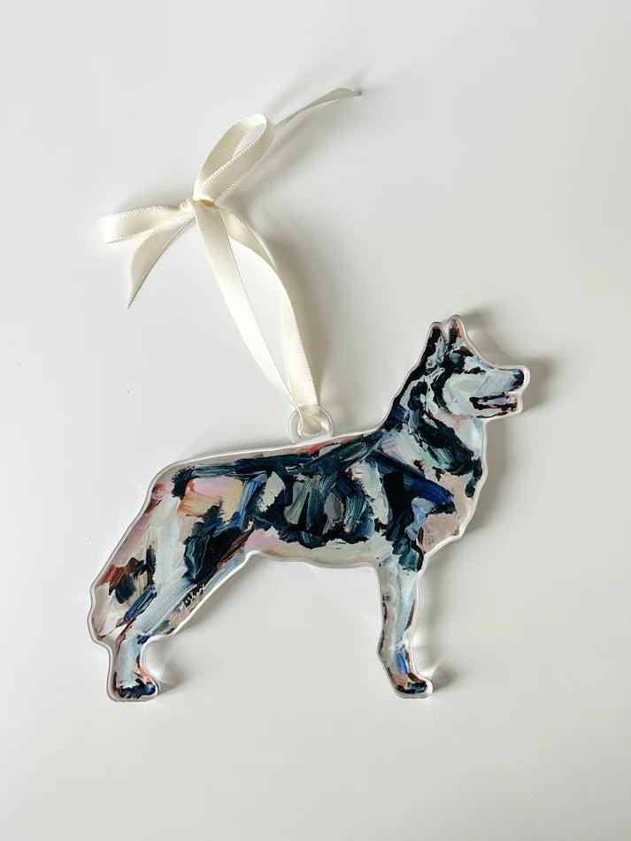 Acrylic ornament printed with Chelsea McShane's original Siberian Husky artwork.