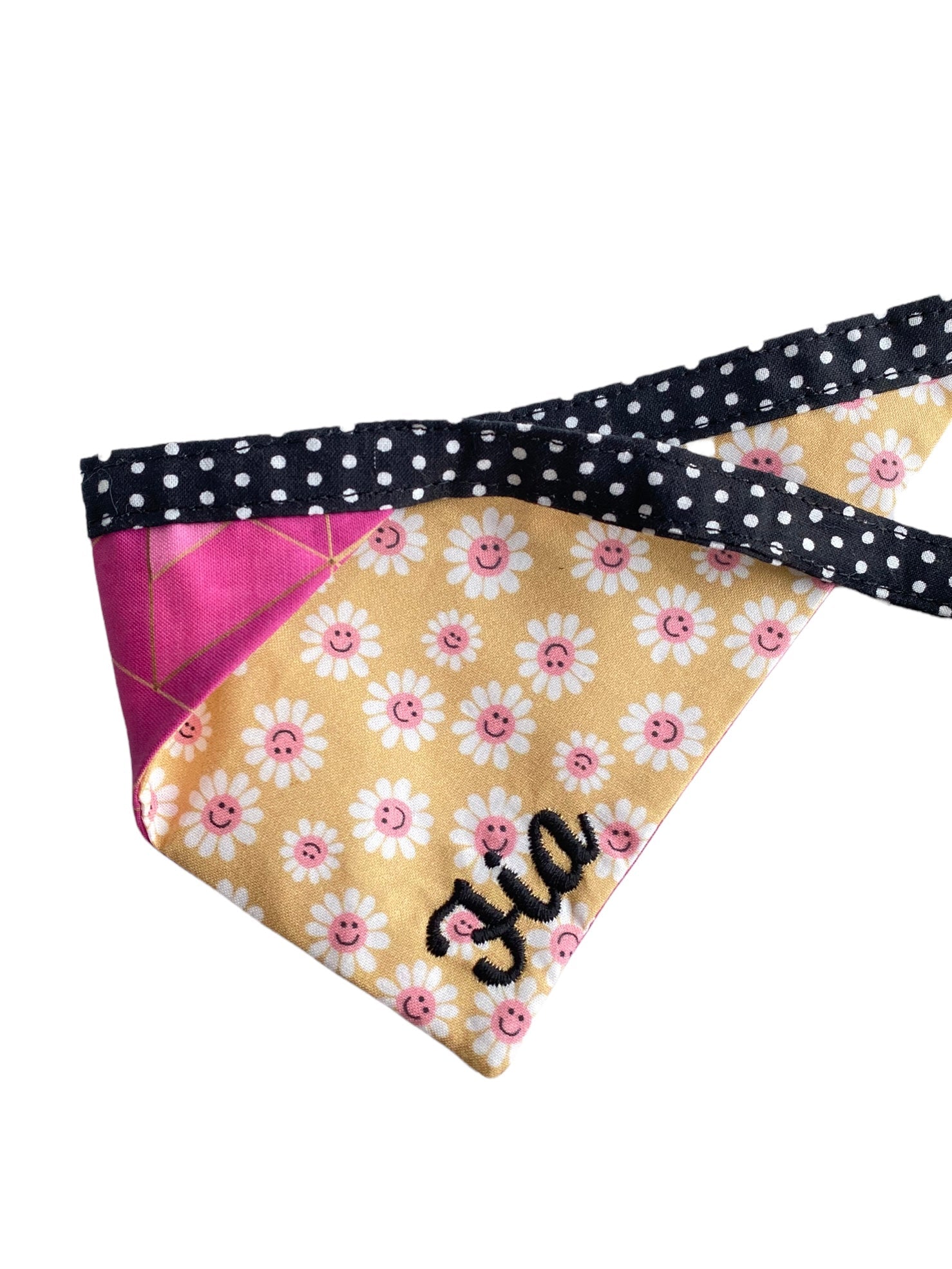 Personalized Double Sided Bandana | Smiley Daisy & Magenta Geo Bandana | Duke & Fox®
