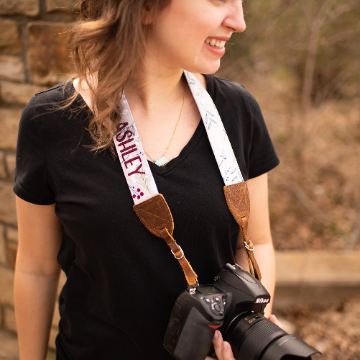 Duke & Fox® also makes personalized camera straps! Our camera straps help you as the photographer make a statement of style while you work. Our personalized camera straps are a great way to share your name in a subtle way. Our straps can be made in any pattern in our shop!
