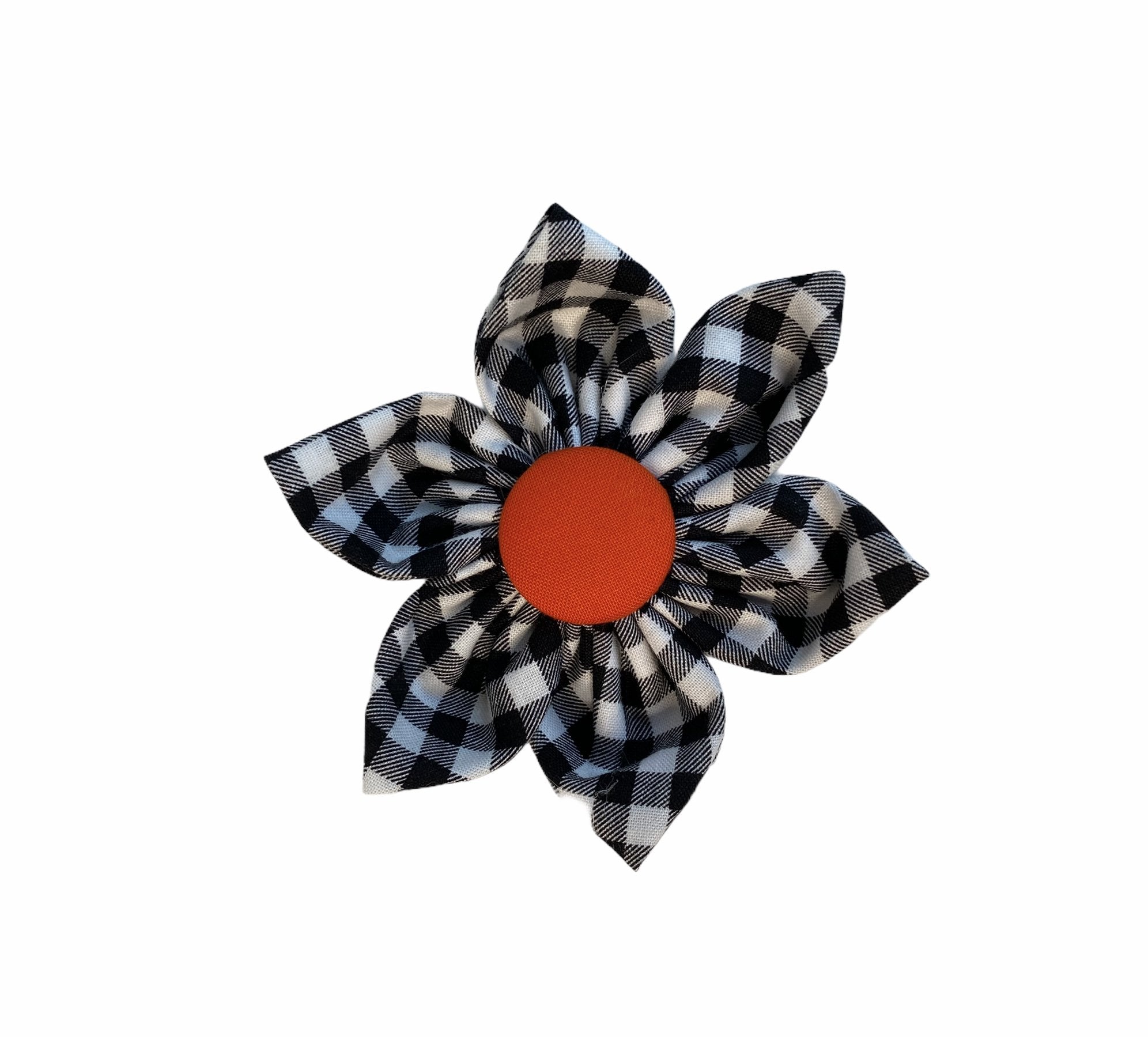 Duke & Fox® handmade dog collar flowers are the perfect dog collar accessory and easily wraps onto any size collar to add a fun pop of color and style. Our dog collar flower accessories come in a variety of patterns to match any of our personalized dog collars.