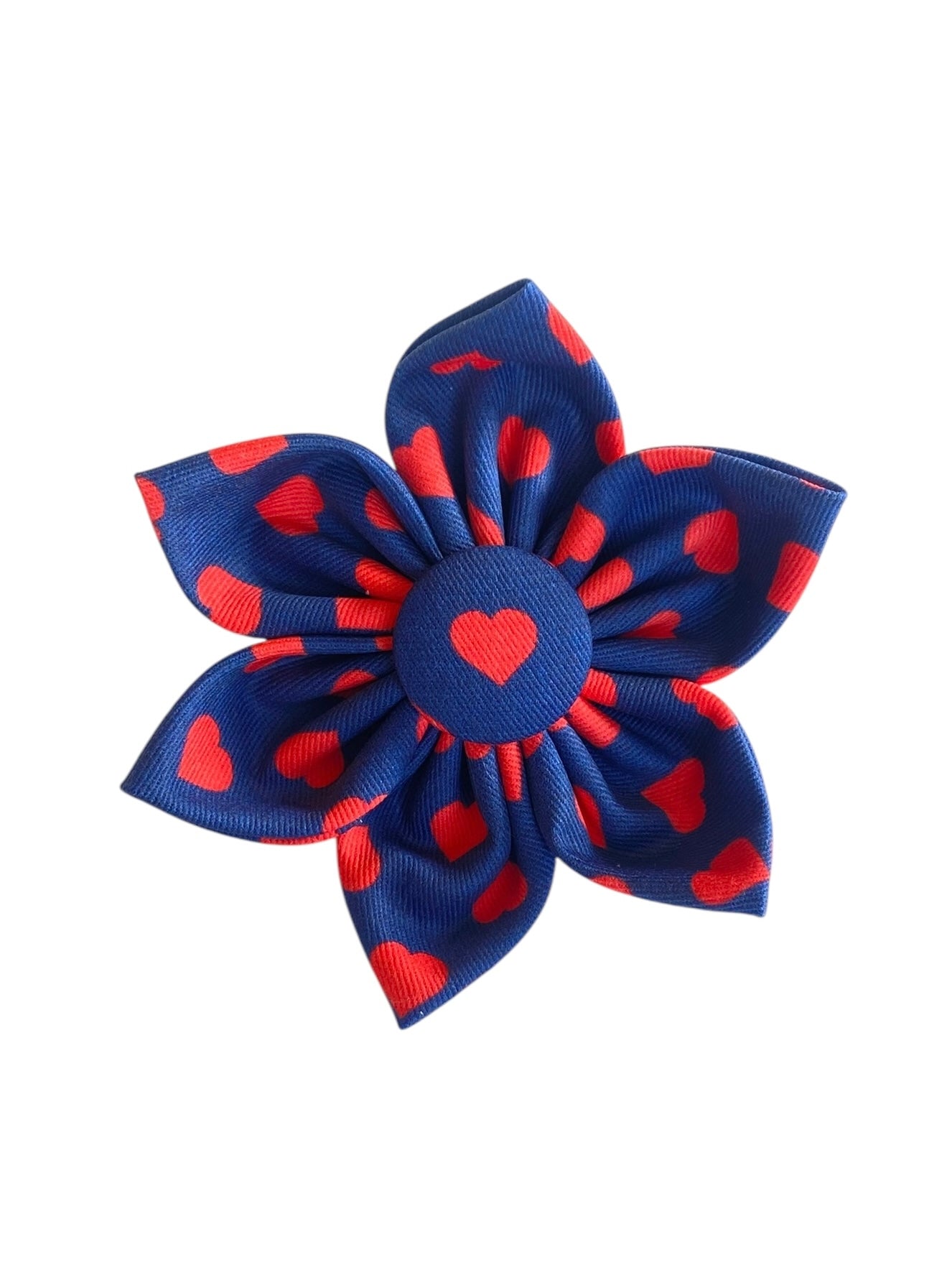Navy with Red Hearts Dog Collar Flower