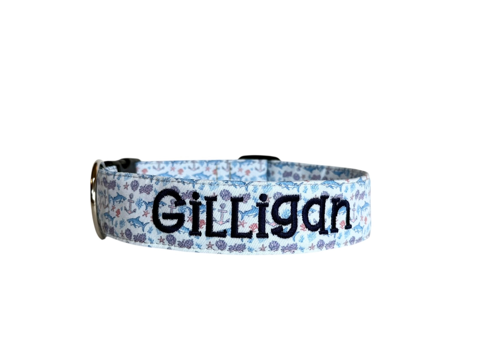 Set sail in style with this personalized nautical dog collar featuring anchors, sea creatures, and coastal motifs. This collar is perfect for beach trips, boat days, and pups who love seaside adventures.