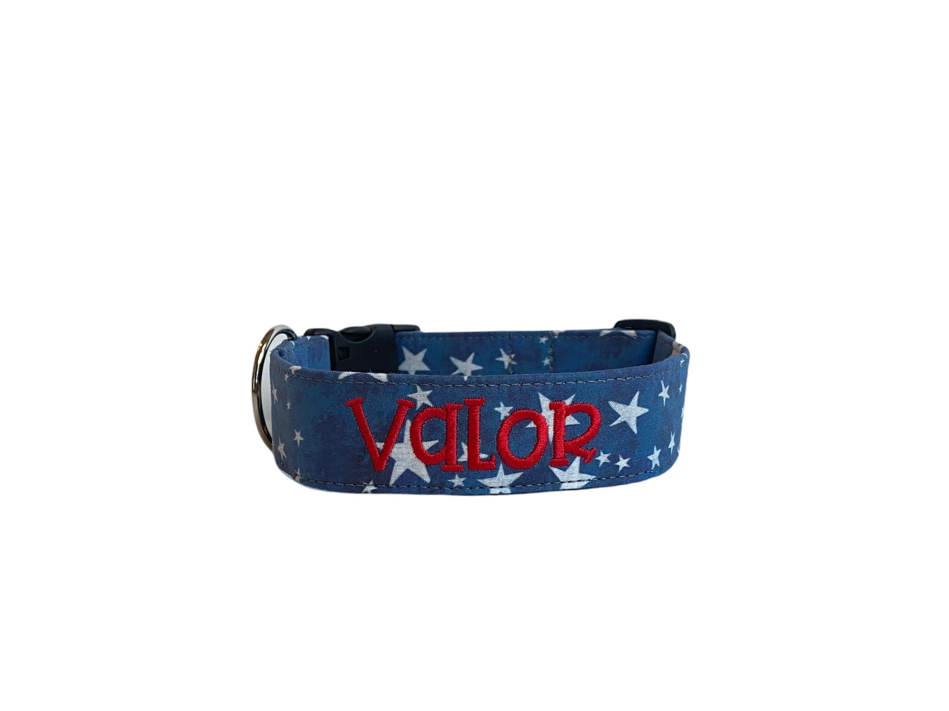 Please keep in mind our size chart provides sizing based upon the dogs neck in inches, not the length of the collar. Do not size up, our size chart is optimized to prevent embroidery from being covered. We offer a large variety of sizes but, if you feel uncertain of which size to choose, please purchase the closest size and leave a note in the special instructions box, we are happy to custom size your collar so it is a perfect fit.