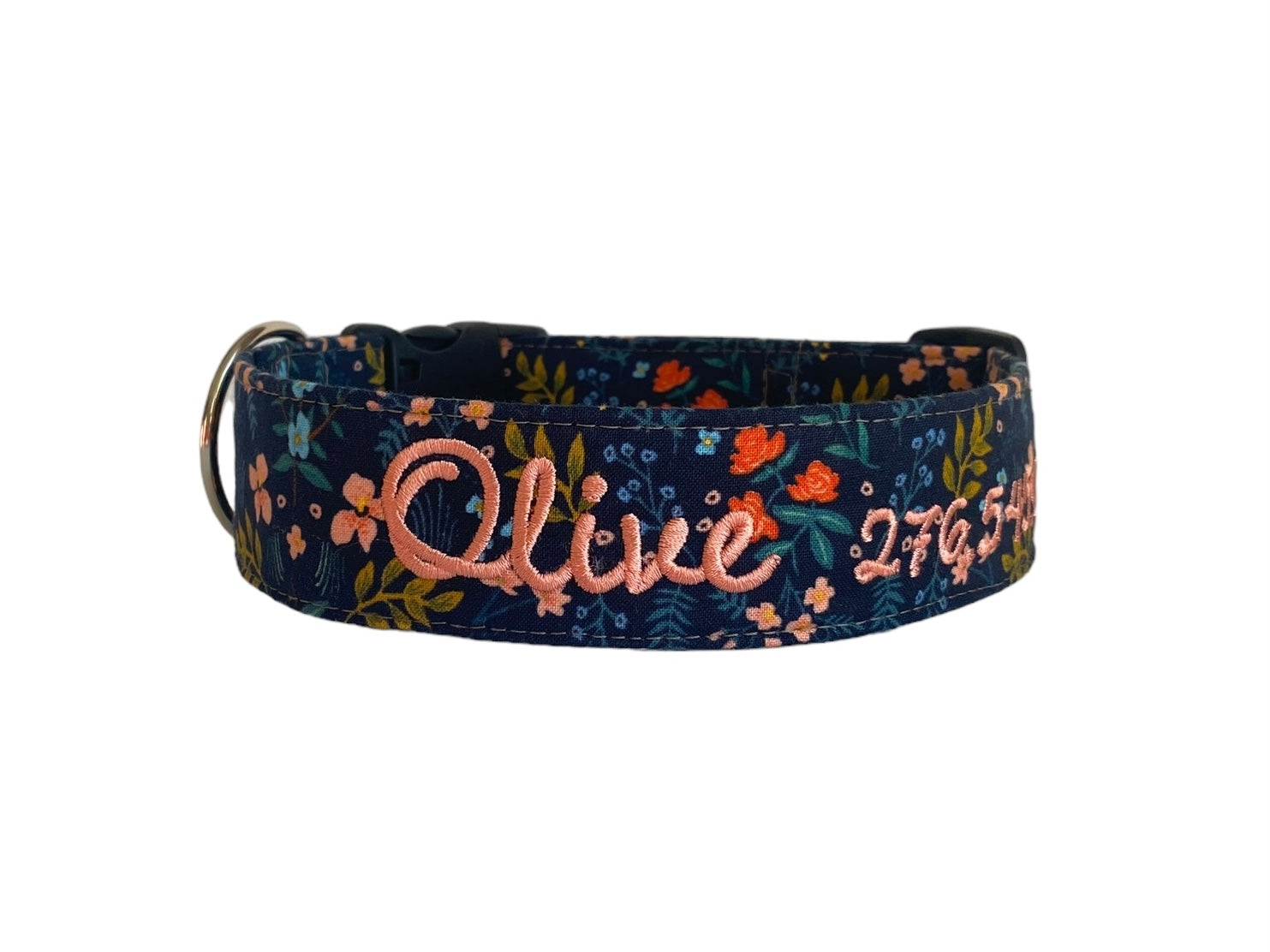 Our personalized Les Fleurs pattern dog collar is perfect for all the girly dogs who also like to be practical. Pair it with our pink flowers and perfection.