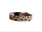Martingales will be made in matching material and are slip on dog collars that are best suited for dogs that slip out of collars easily. When the dog pulls, the martingale tightens so the dog cannot escape. Martingale collars are intended to be used while on walks and not left on unsupervised.
