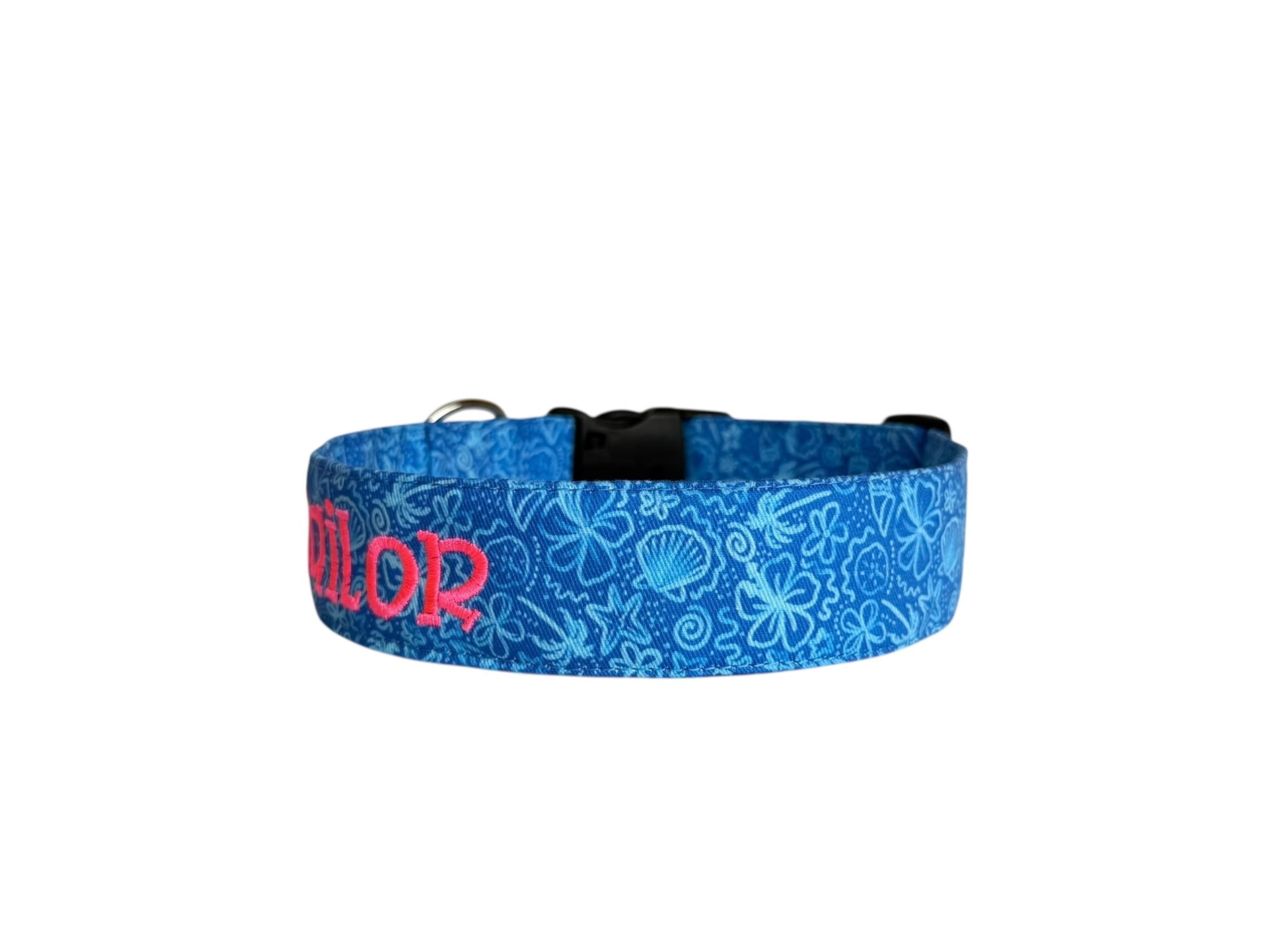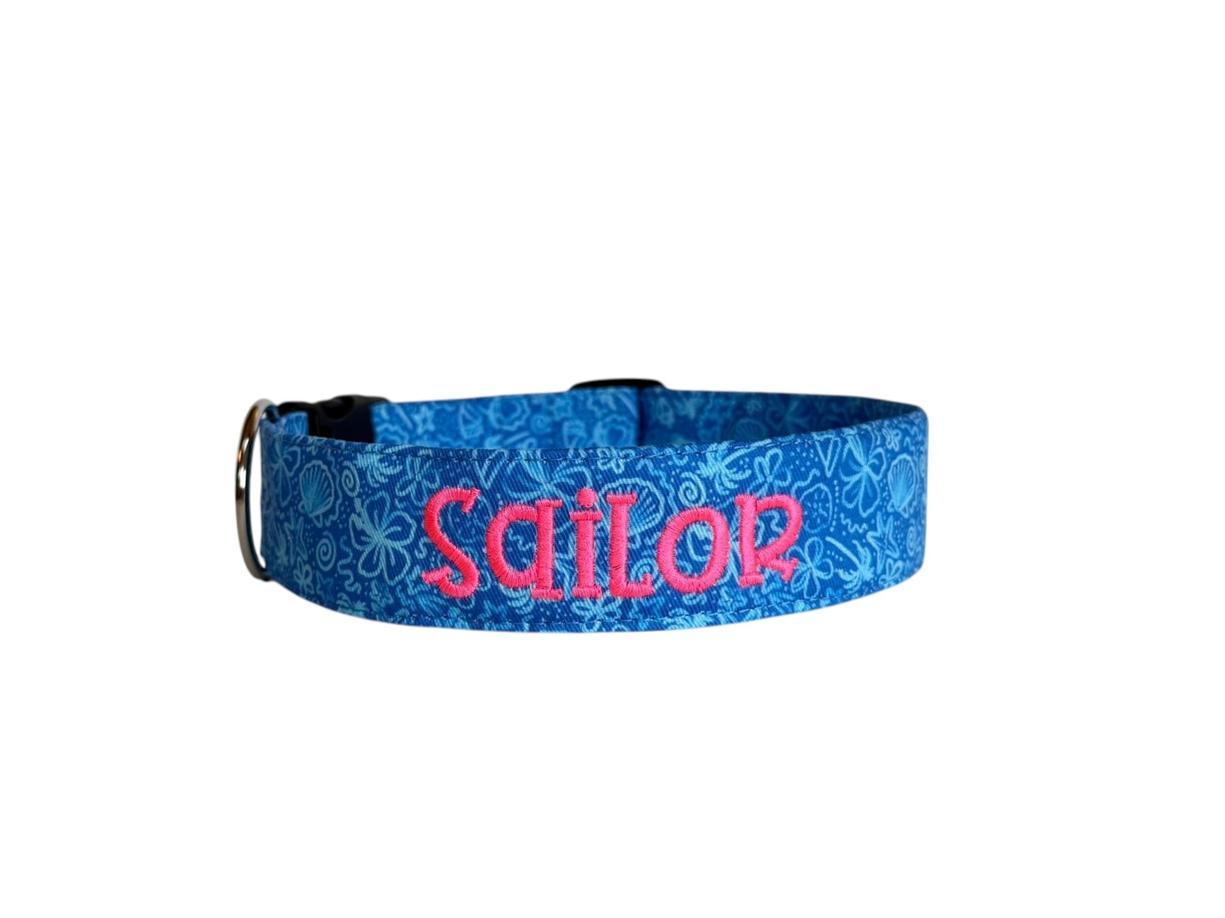 Dive into coastal style with this personalized ocean-inspired dog collar featuring seashells and marine motifs. Perfect for beach lovers, boat days, and everyday seaside charm.