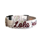 Our collars are functional, stylish, and handmade to stand out and express your pup's personality and your sense of style. Duke & Fox® custom dog collars are made to order and are customized to your exact criteria. You have the option of choosing the pattern, thread colors, font, and buckle style. We also offer matching leashes, bow ties, flowers, and bandanas to complete your look.