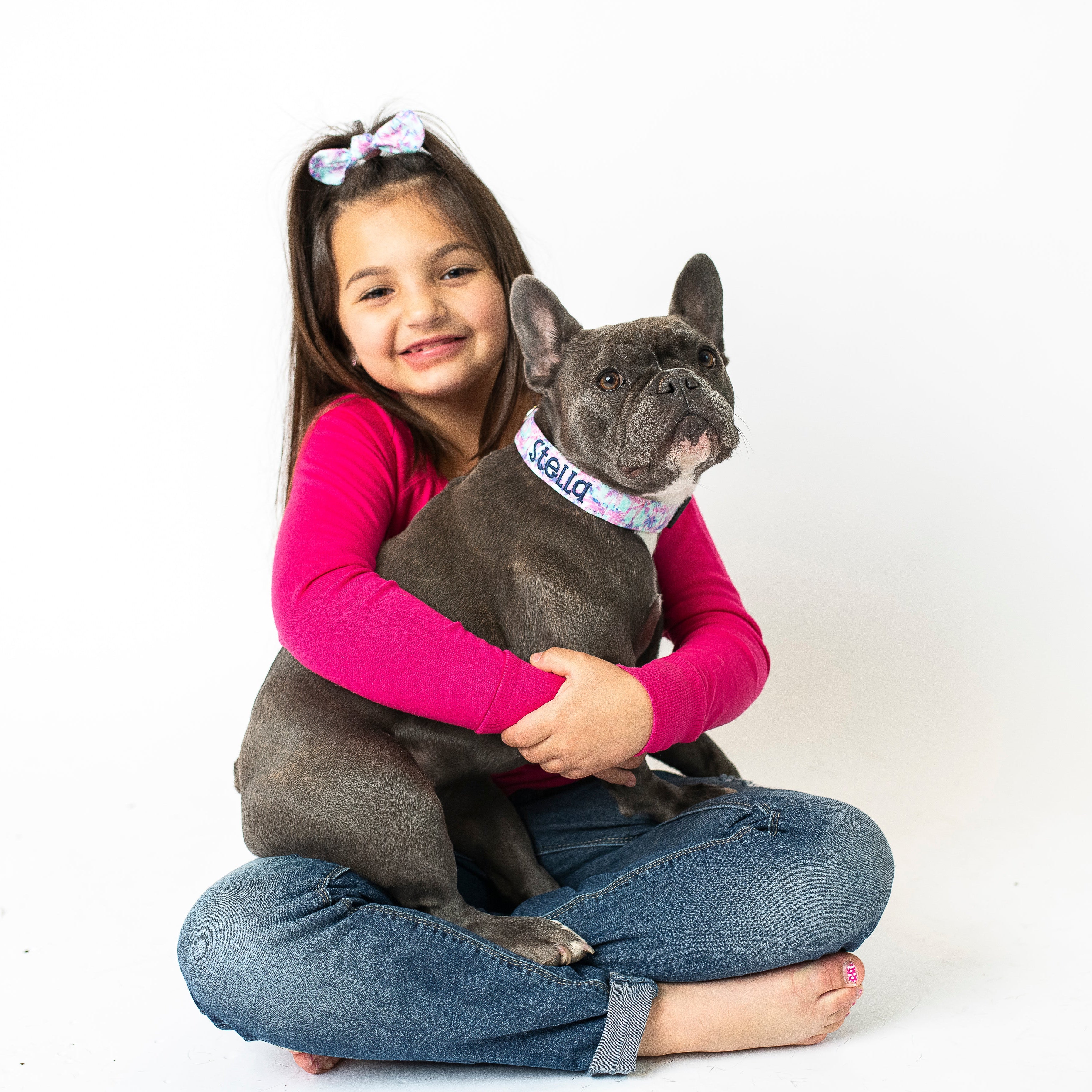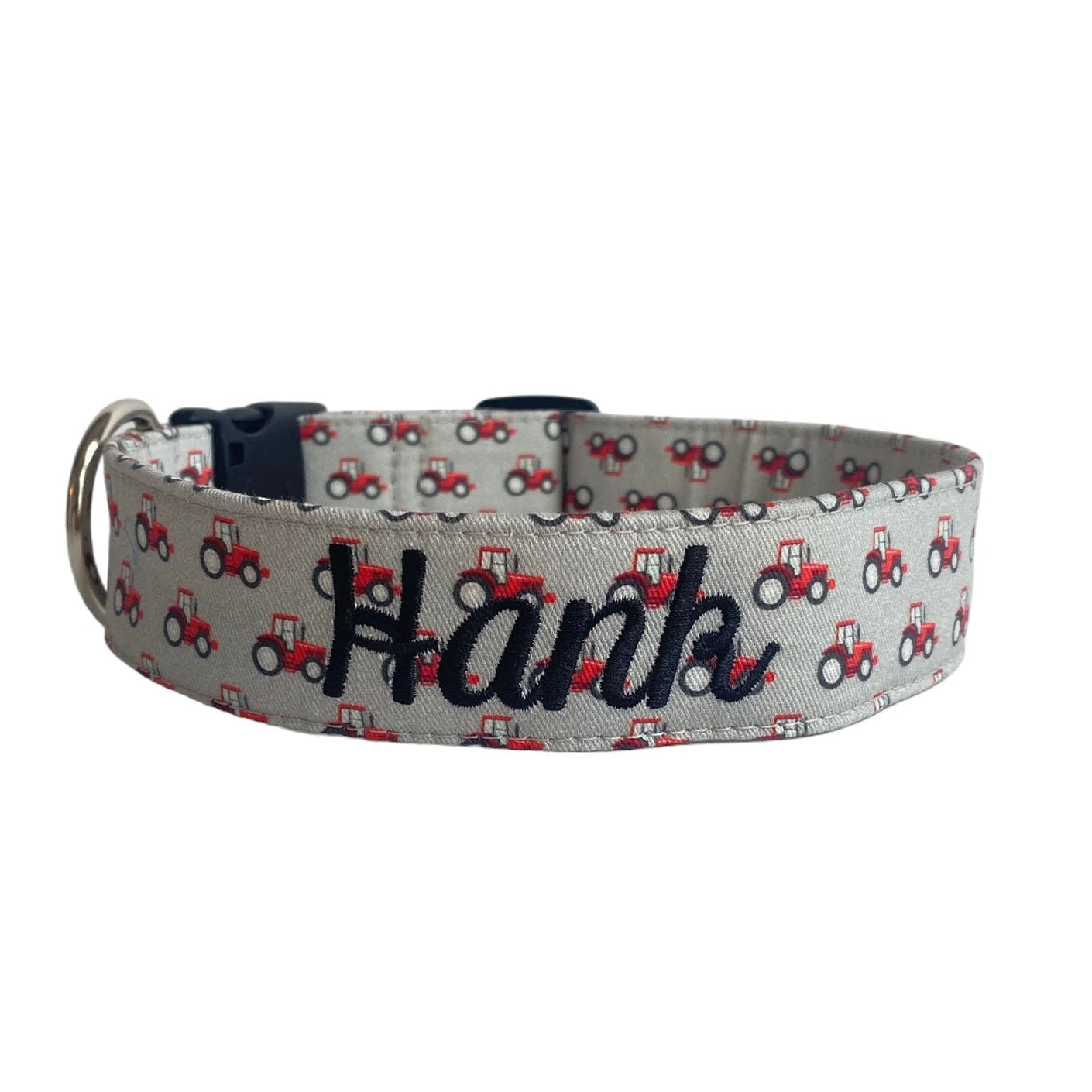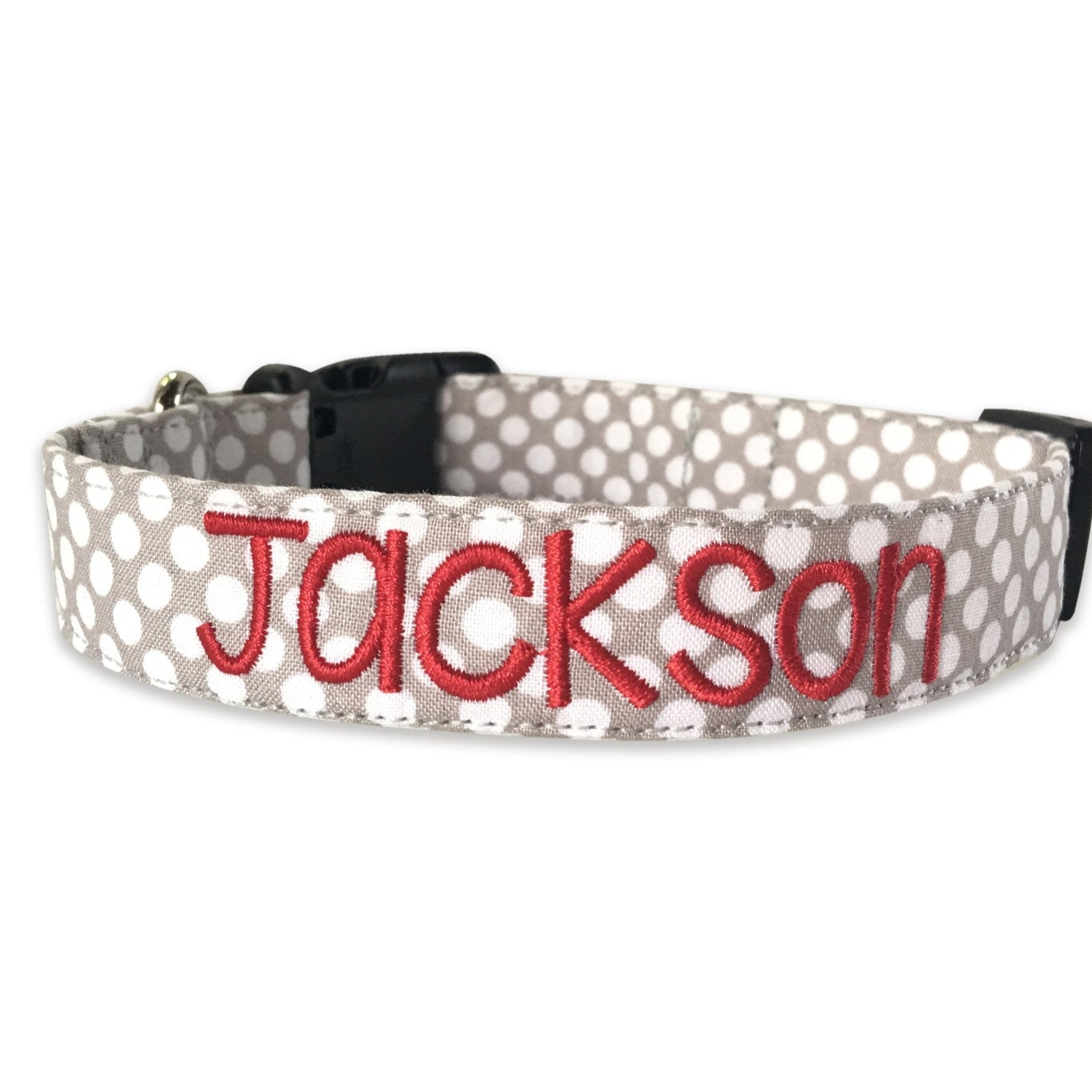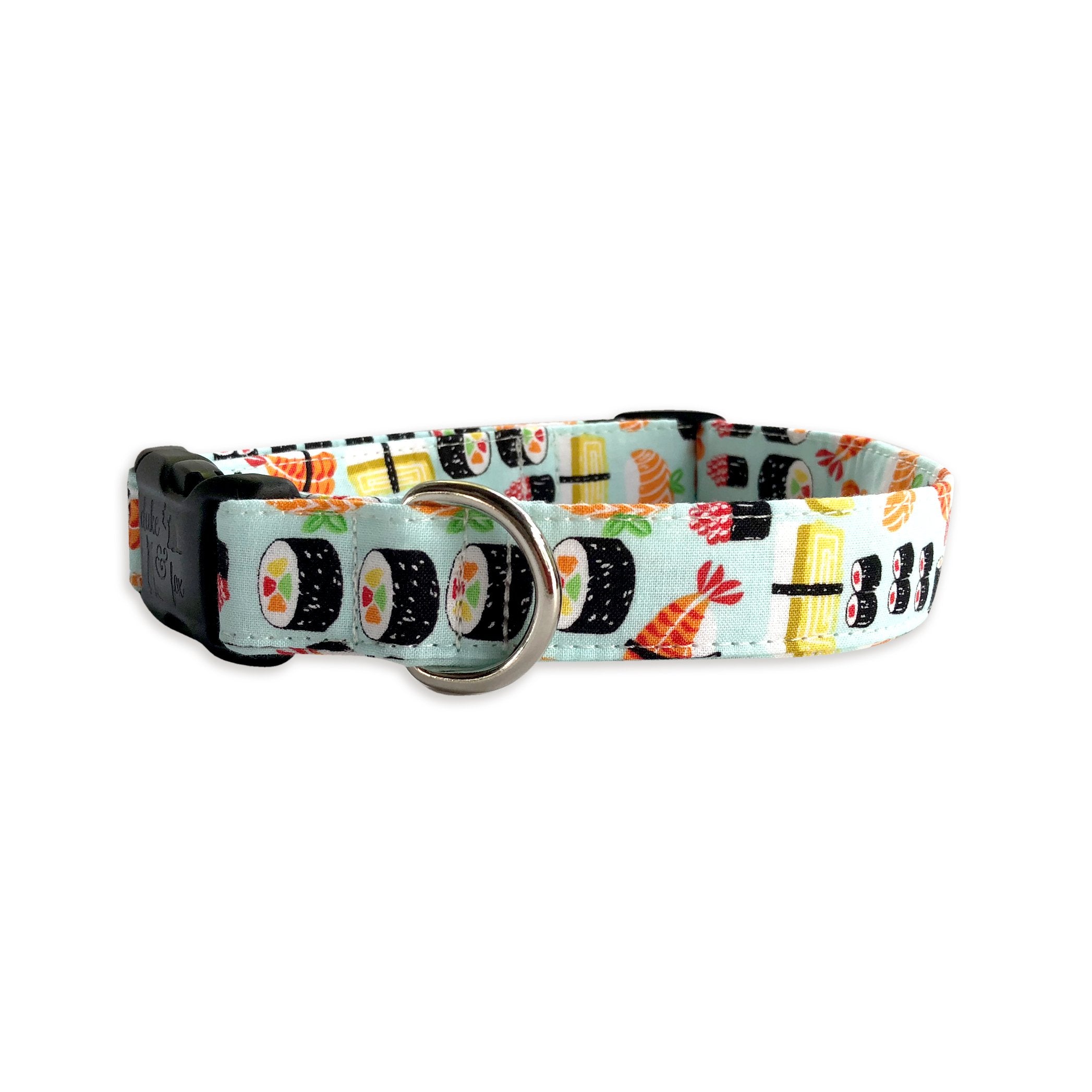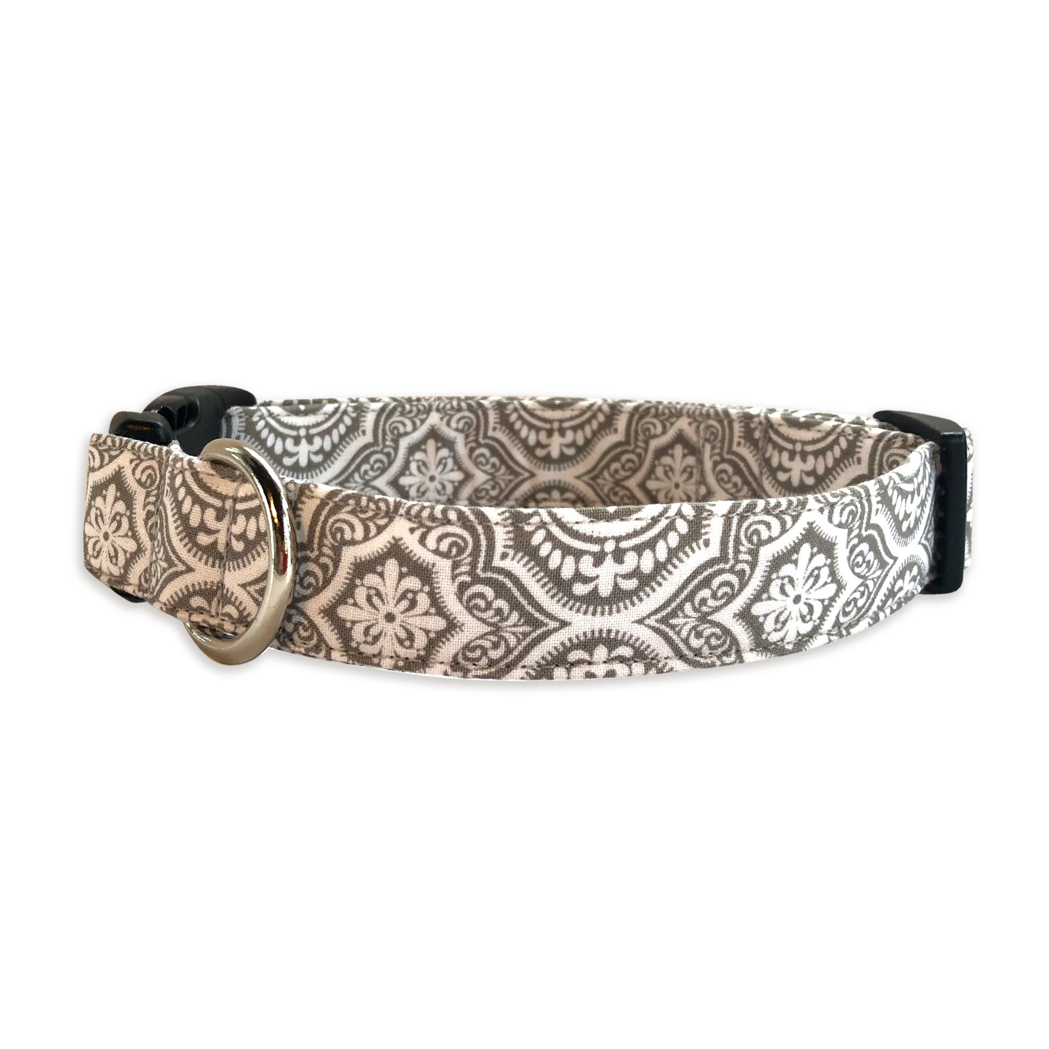 Our personalized embroidered dog collars are head turners! Our designer fabrics paired with your choice of font and thread color make for a great personalized and unique dog collar that shows their personality. Our embroidered dog collars also offer the option to be completed with an engraved buckle which offers more of that personal touch and also safety. Duke & Fox® custom dog collars are perfect for all dog breeds and come in a large variety of sizes. We also have matching collar accessories including leashes, bowties, flowers, and harnesses.