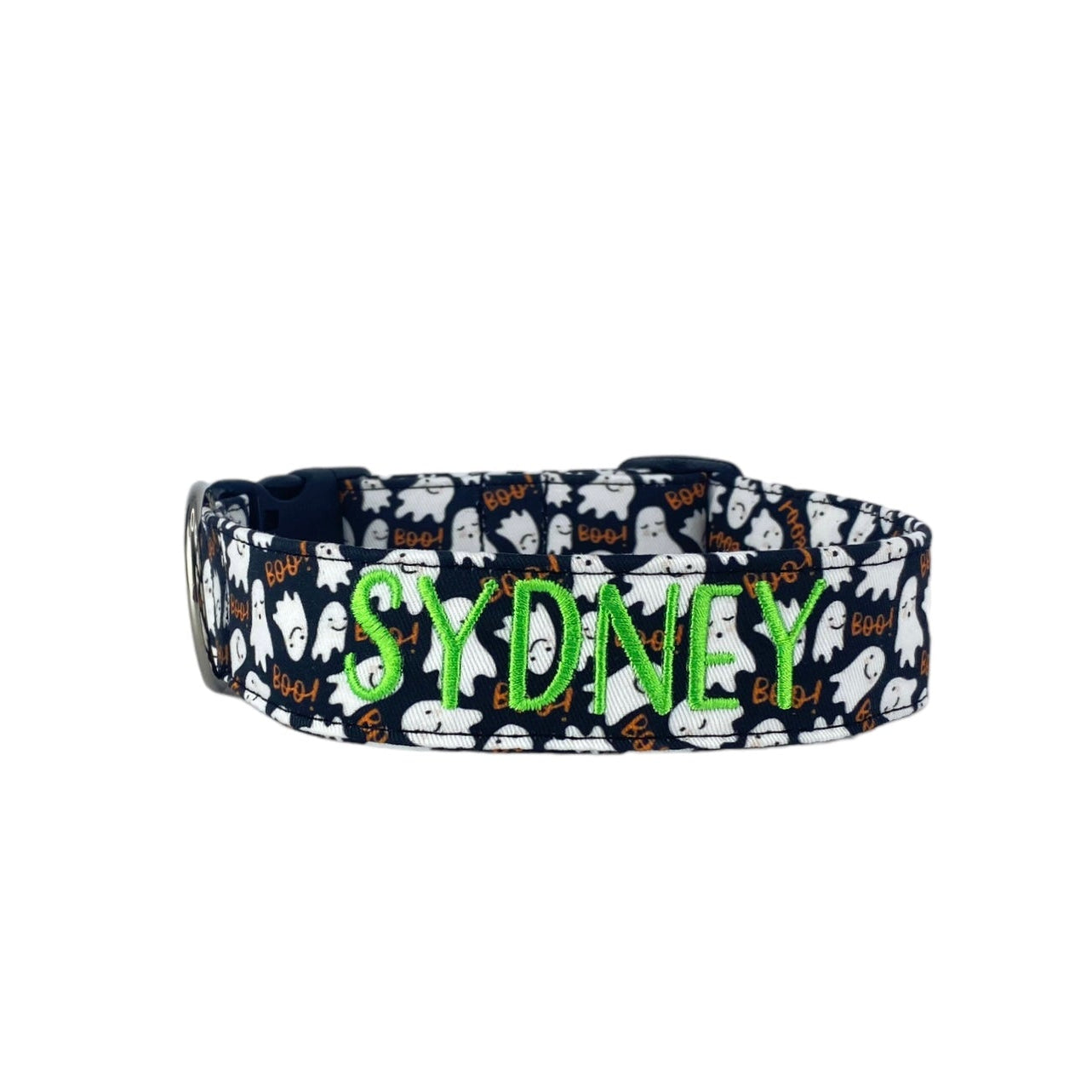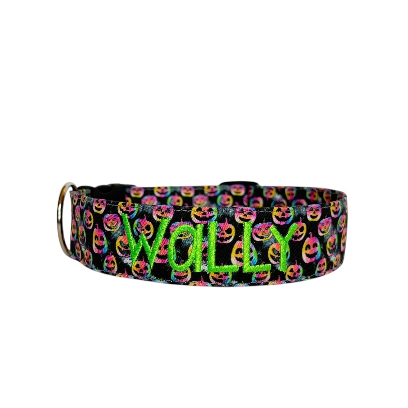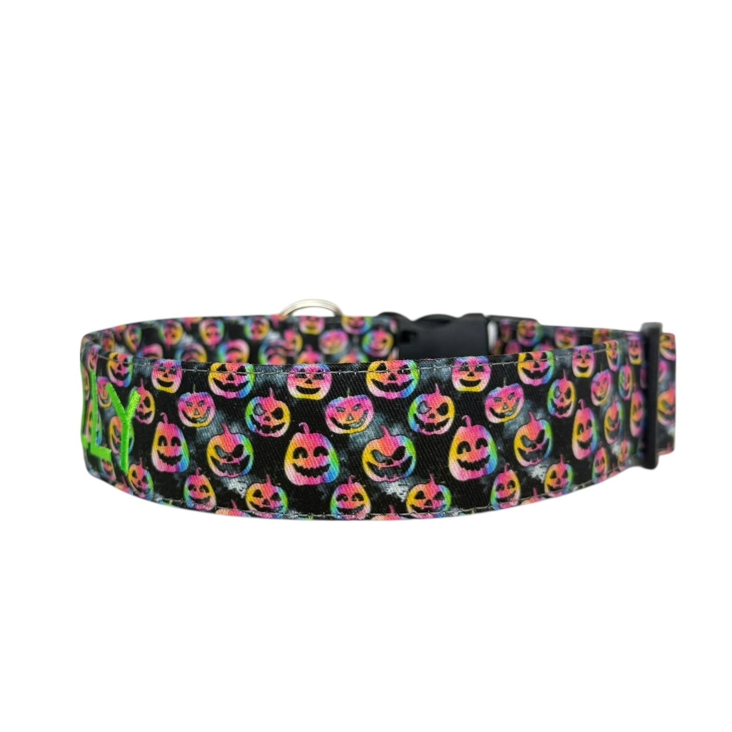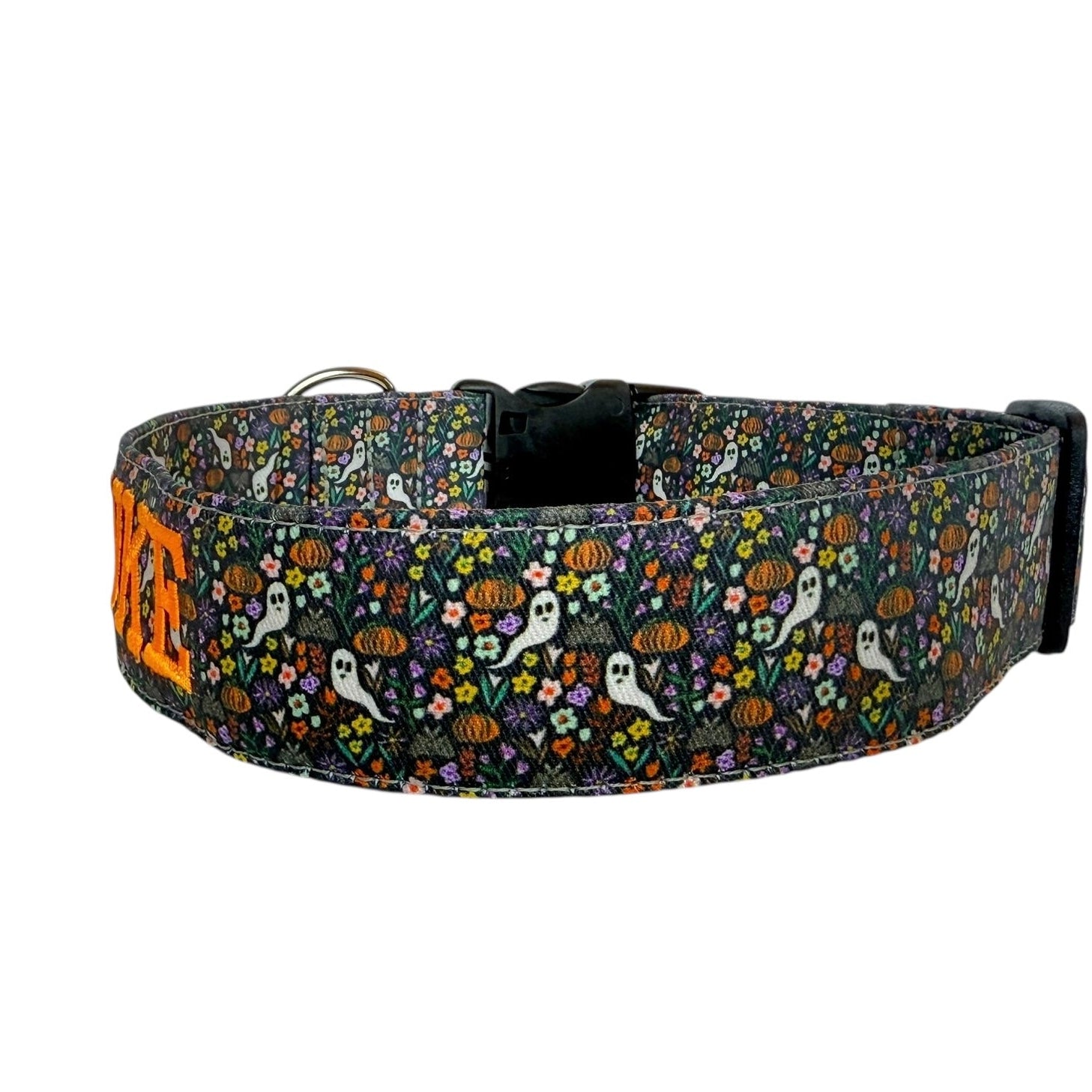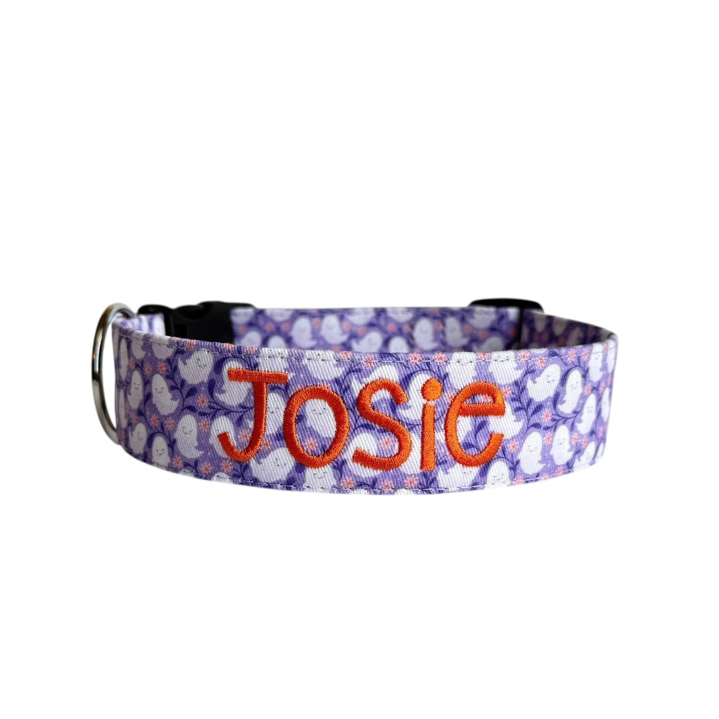 Handmade in Tennessee, our festive collars feature fun Halloween patterns—perfect for trick-or-treating, costume parties, and cozy fall strolls. Personalize your collar with your dog’s name and your contact info using high-quality embroidery. Choose from a variety of spooky designs, thread colors, and font styles to create a one-of-a-kind look that keeps your pup both safe and stylish. Complete the Halloween vibe with our matching leashes, bow ties, and flowers!