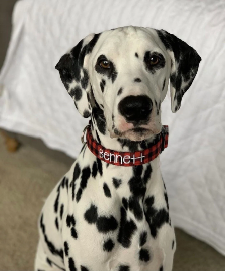 Our red and black buffalo plaid dog collar is perfect for everyday lumberjack style or for those Christmas cards you're sending out the whole family in "matchy matchy pj's."