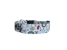 Martingales will be made in matching material and are slip on dog collars that are best suited for dogs that slip out of collars easily. When the dog pulls, the martingale tightens so the dog cannot escape. Martingale collars are intended to be used while on walks and not left on unsupervised.