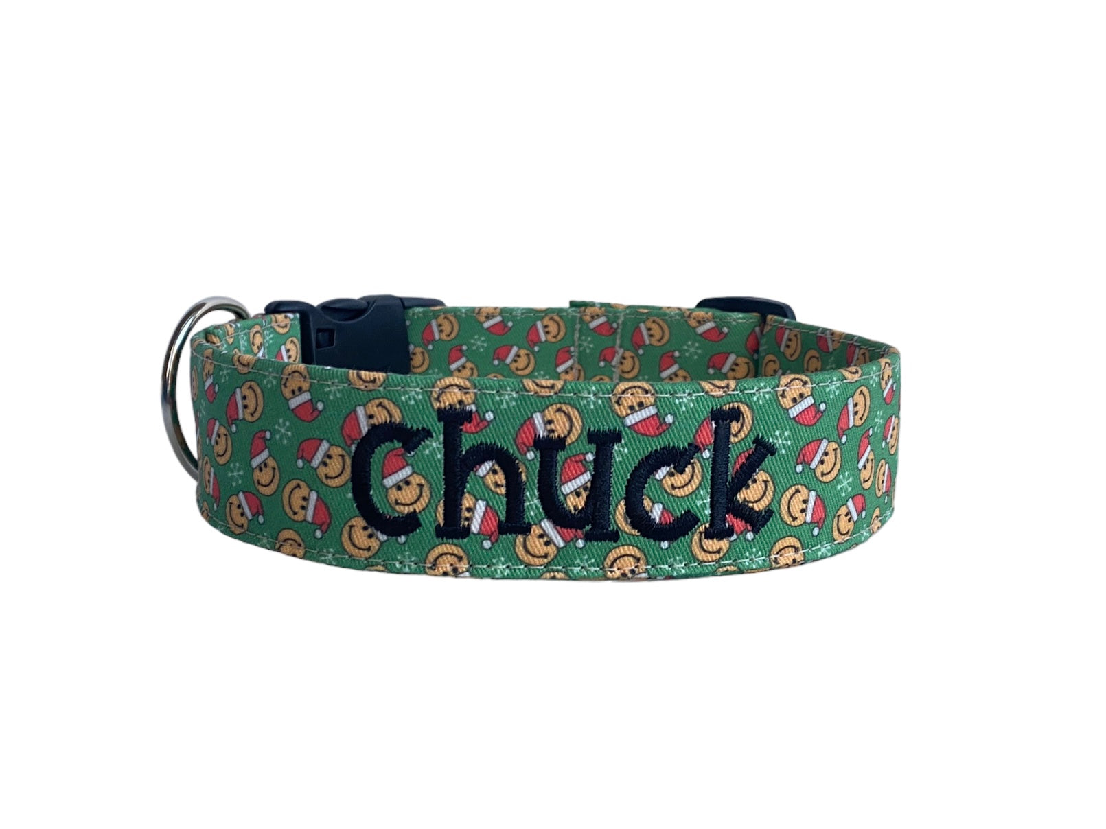 Please keep in mind our size chart provides sizing based upon the dogs neck in inches, not the length of the collar. Do not size up, our size chart is optimized to prevent embroidery from being covered. We offer a large variety of sizes but, if you feel uncertain of which size to choose, please purchase the closest size and leave a note in the special instructions box, we are happy to custom size your collar so it is a perfect fit.