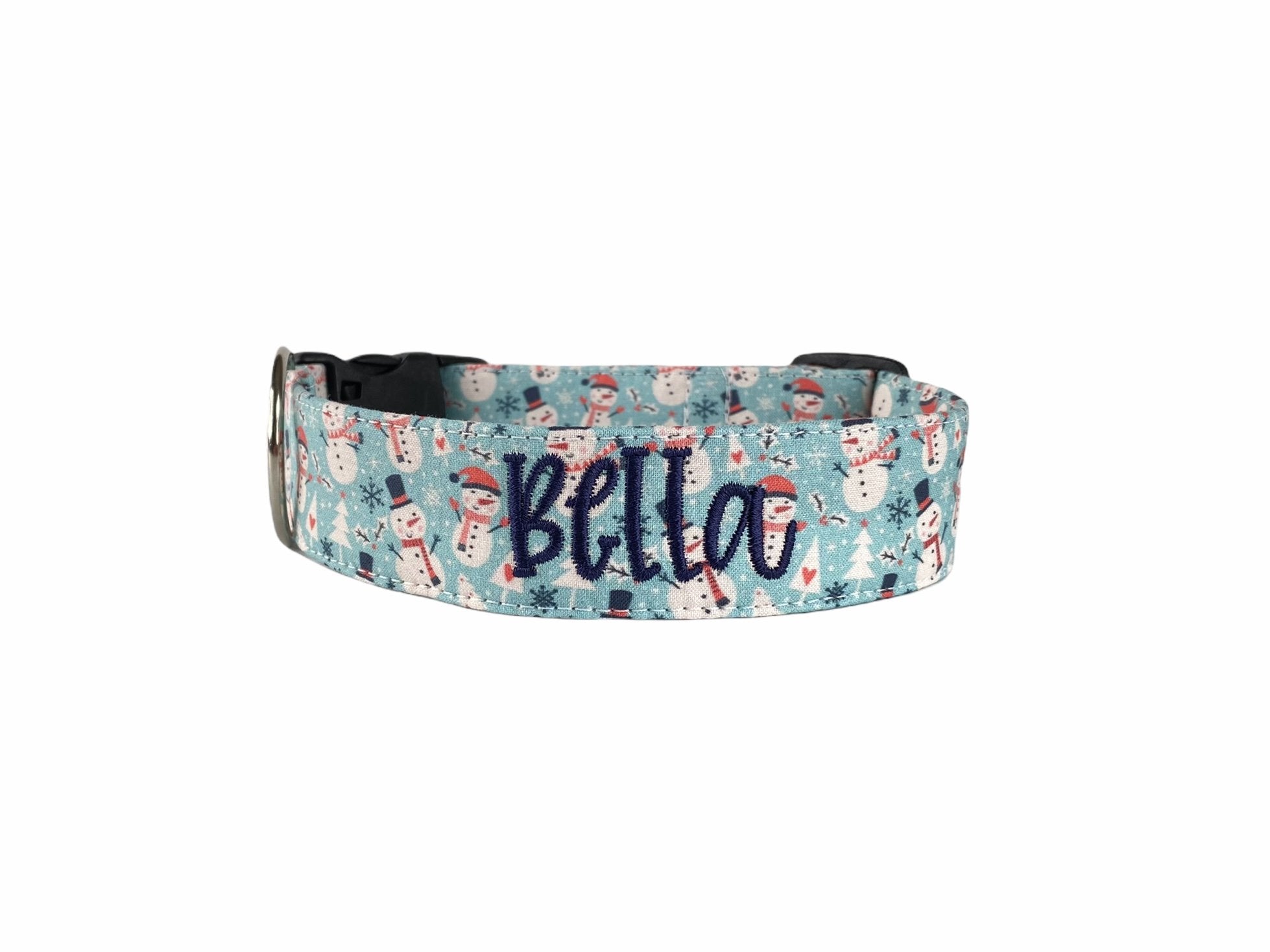Let it snow, let it snow, let it snow....be bright and merry in a snowman personalized collar.