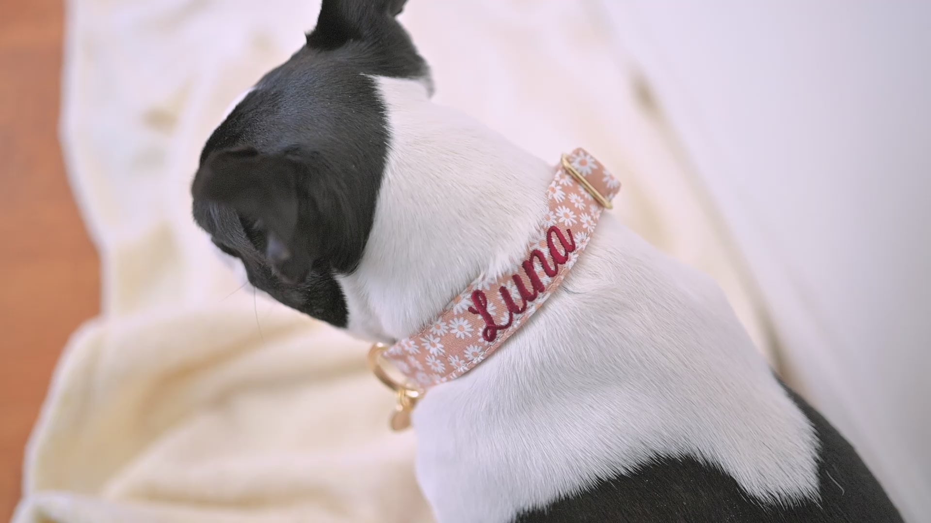 Our collars are functional, stylish, and handmade to stand out and express your pup's personality and your sense of style. Duke & Fox® custom dog collars are made to order and are customized to your exact criteria. You have the option of choosing the pattern, thread colors, font, and buckle style. We also offer matching leashes, bow ties, flowers, and bandanas to complete your look.