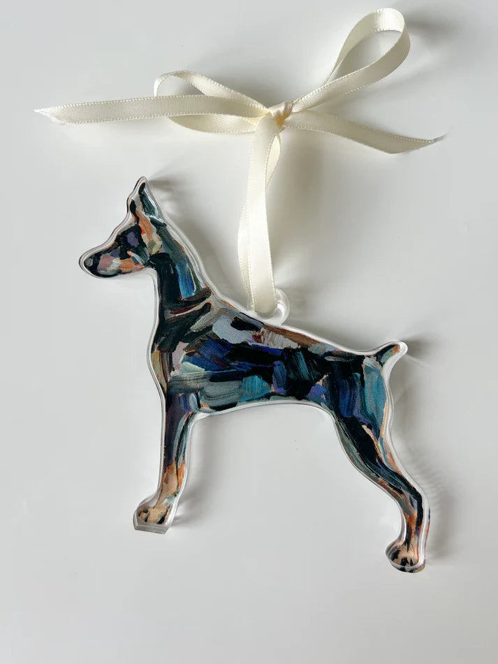 Acrylic ornament printed with Chelsea McShane's original Doberman artwork.