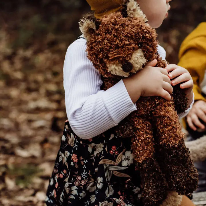 Foxy is handsome fox indeed, from his furry muzzle to his fluffy tipped tail in rich auburn red, burnt cream, and chocolate brown fur. Embroidered features and velour nose. Foxy is certainly the most dashing Fox stuffed animal that you ever did meet and a favorite of all the woodland friends.
