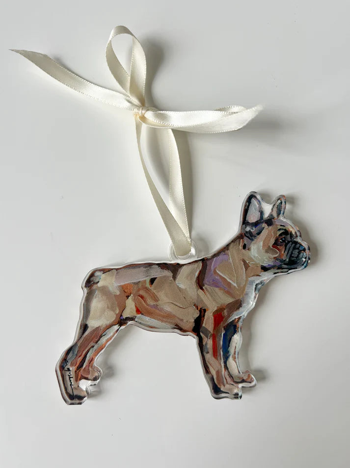 Acrylic ornament printed with Chelsea McShane's original Blonde Frenchie art design.