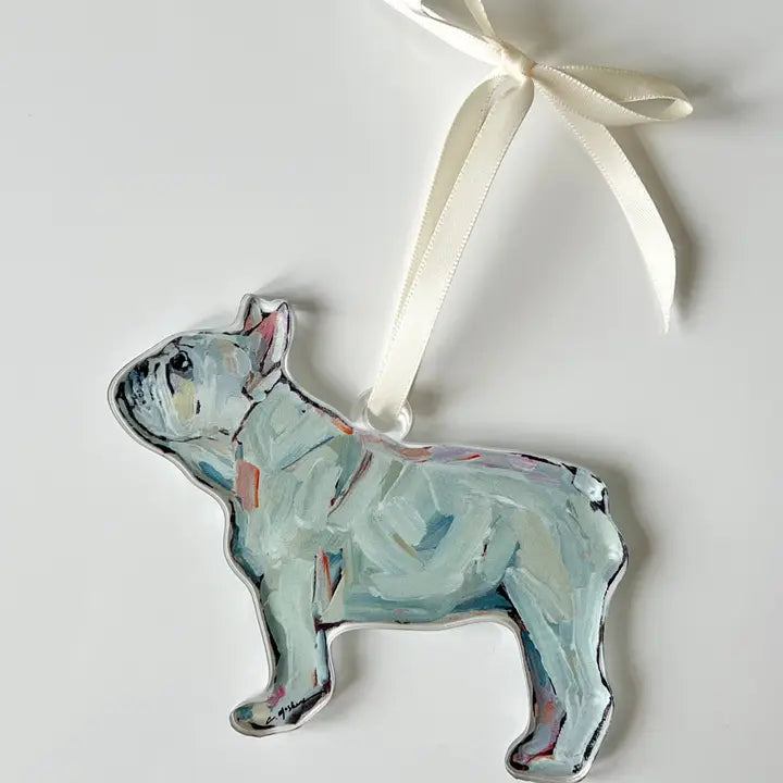 Acrylic ornament printed with Chelsea McShane's original French Bulldog artwork.