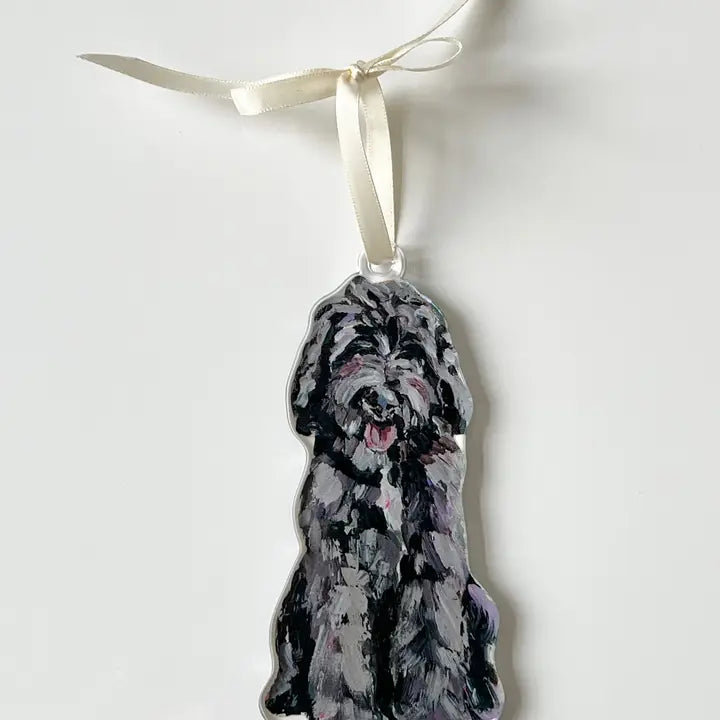Acrylic ornament printed with Chelsea McShane's original Goldendoodle artwork.