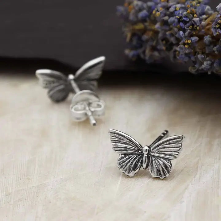 Summery and romantic, these sterling silver textured butterfly post earrings are perfect for brides maids gifts, summer birthdays, and beach jewelry. Butterflies have long been symbols of grace and transformation, making them thoughtful gifts for graduation and career transitions too. These butterfly post earrings have a certain innocence to them that fits into youth jewelry lines.