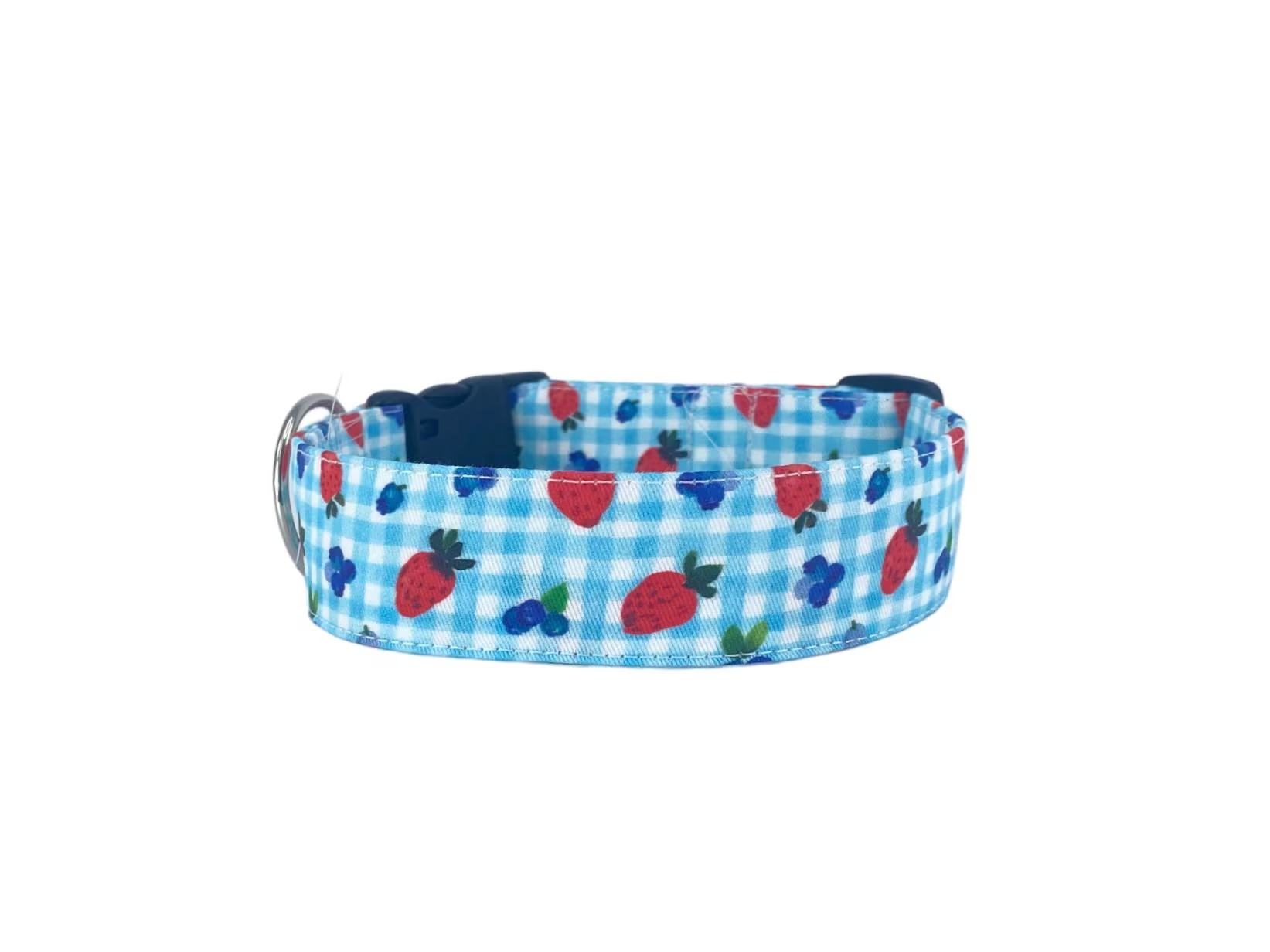 Berry Gingham Personalized Dog Collar