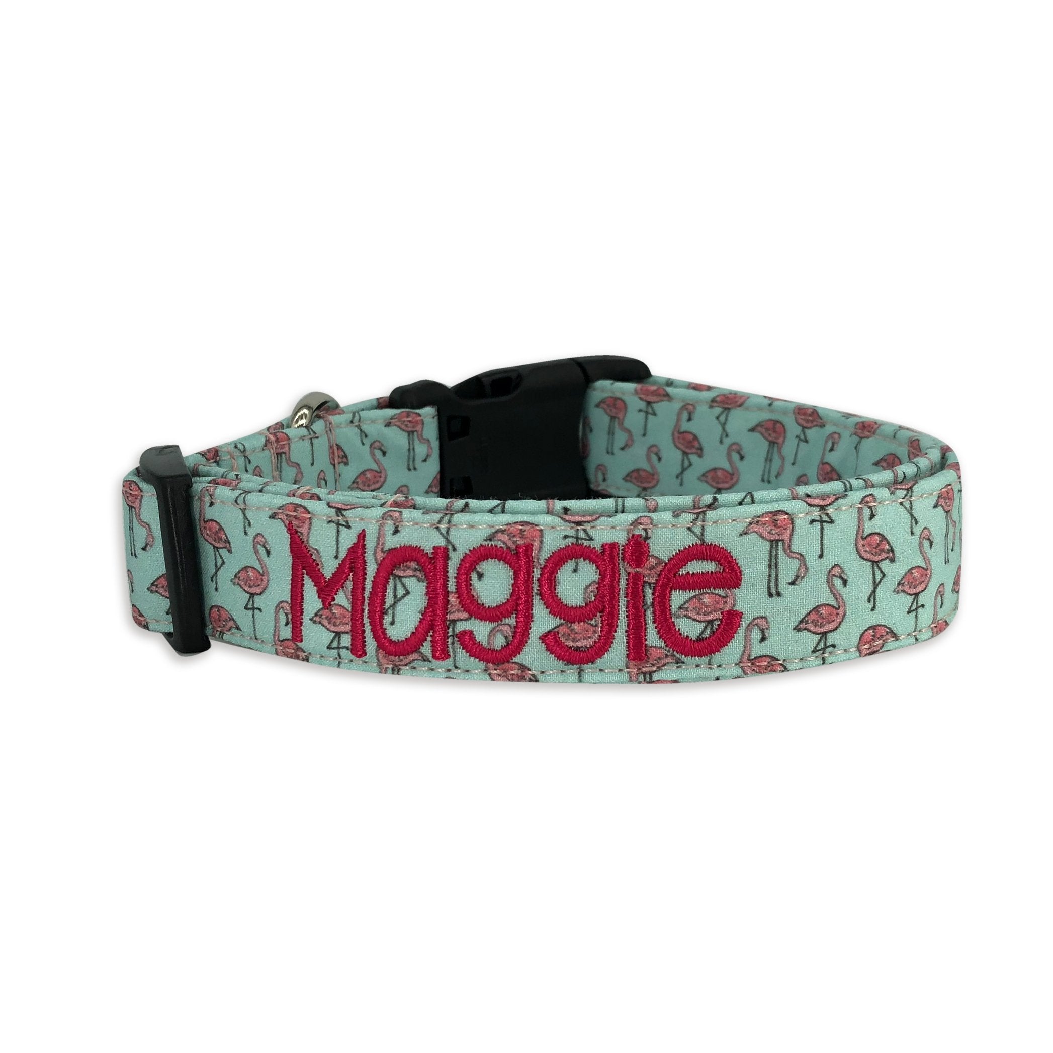 Martingales will be made in matching material and are slip on dog collars that are best suited for dogs that slip out of collars easily. When the dog pulls, the martingale tightens so the dog cannot escape. Martingale collars are intended to be used while on walks and not left on unsupervised.