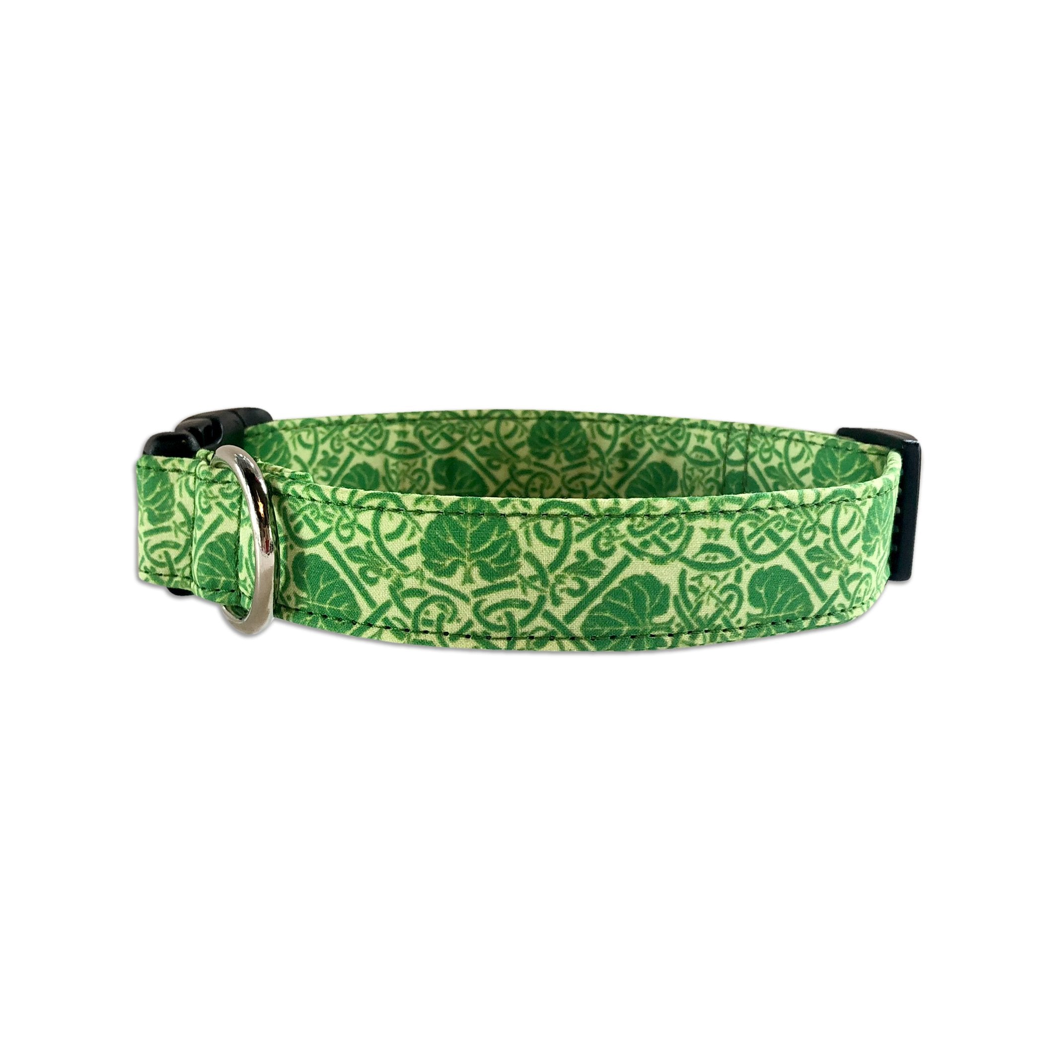 Nothing screams "Kiss me, I'm Irish" quite like this celtic collar! The greens and hearts make for a unique St. Patricks day print.