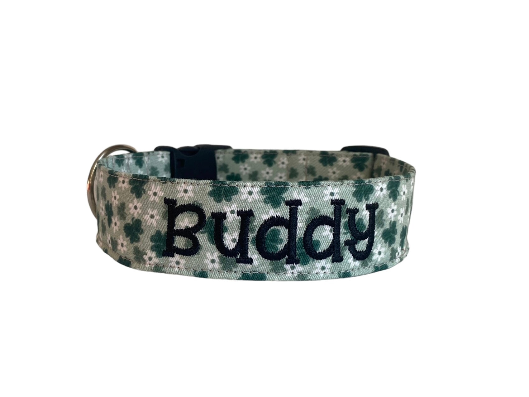 Look your best and avoid the pinches in a personalized St. Patrick's Day dog collar customized with your personal information to keep your pup safe.