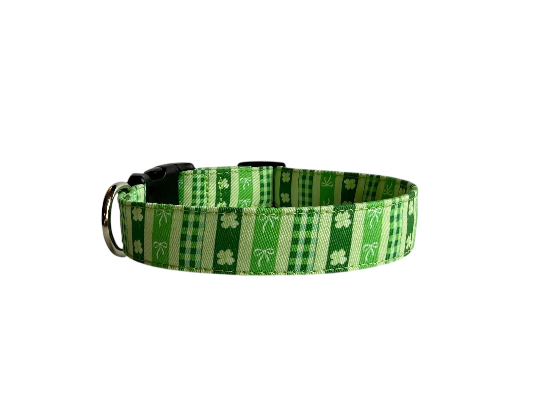 Martingales will be made in matching material and are slip on dog collars that are best suited for dogs that slip out of collars easily. When the dog pulls, the martingale tightens so the dog cannot escape. Martingale collars are intended to be used while on walks and not left on unsupervised.
