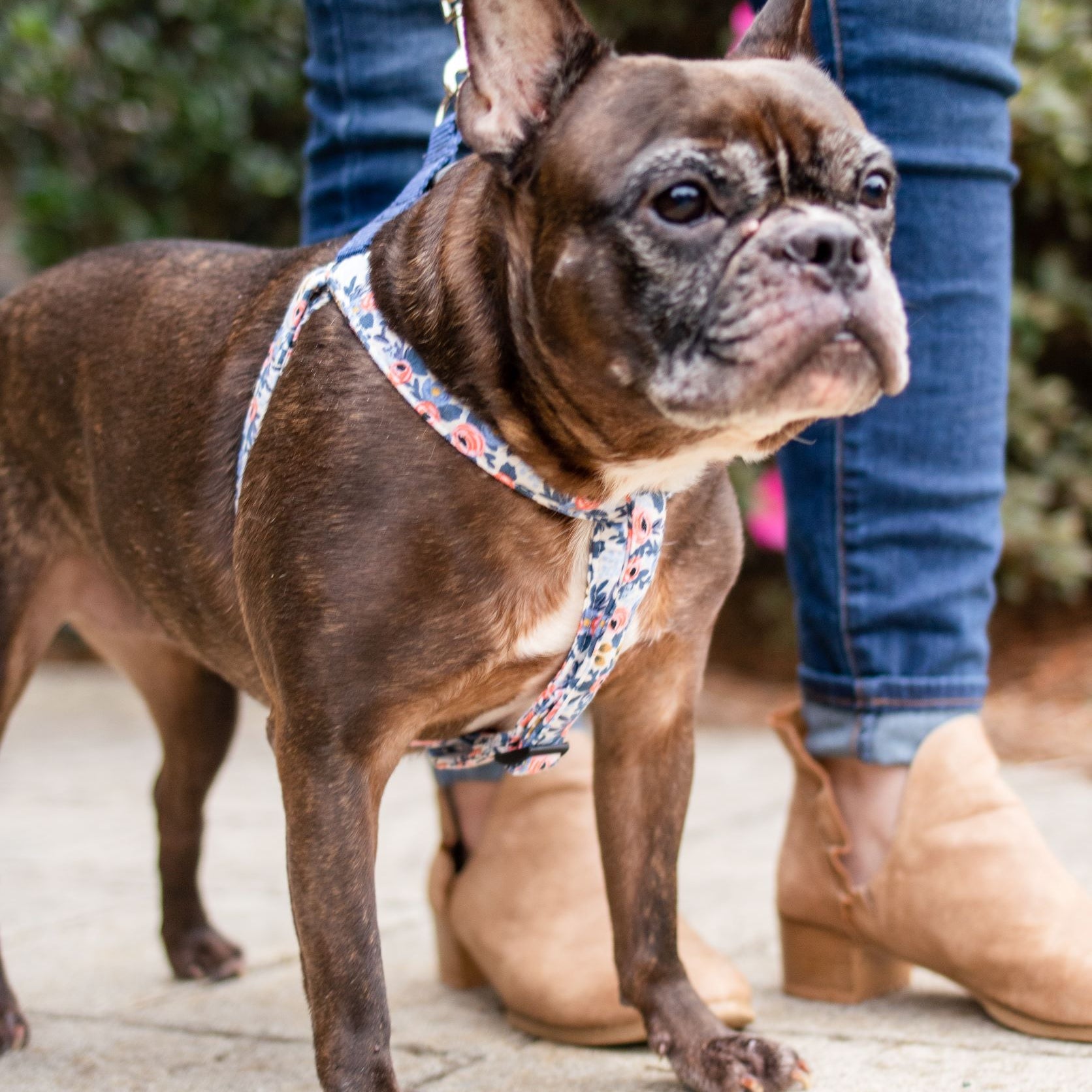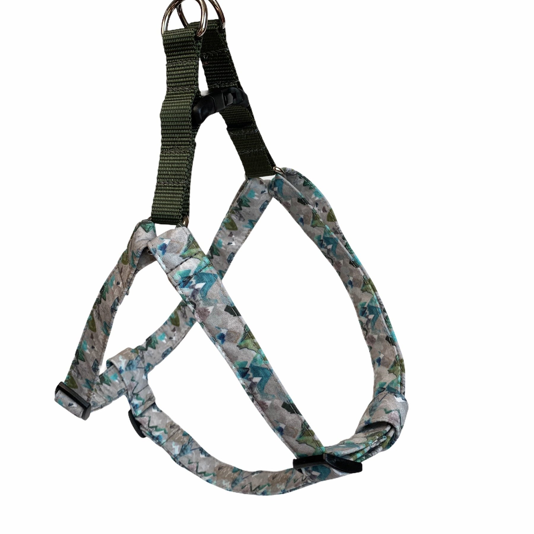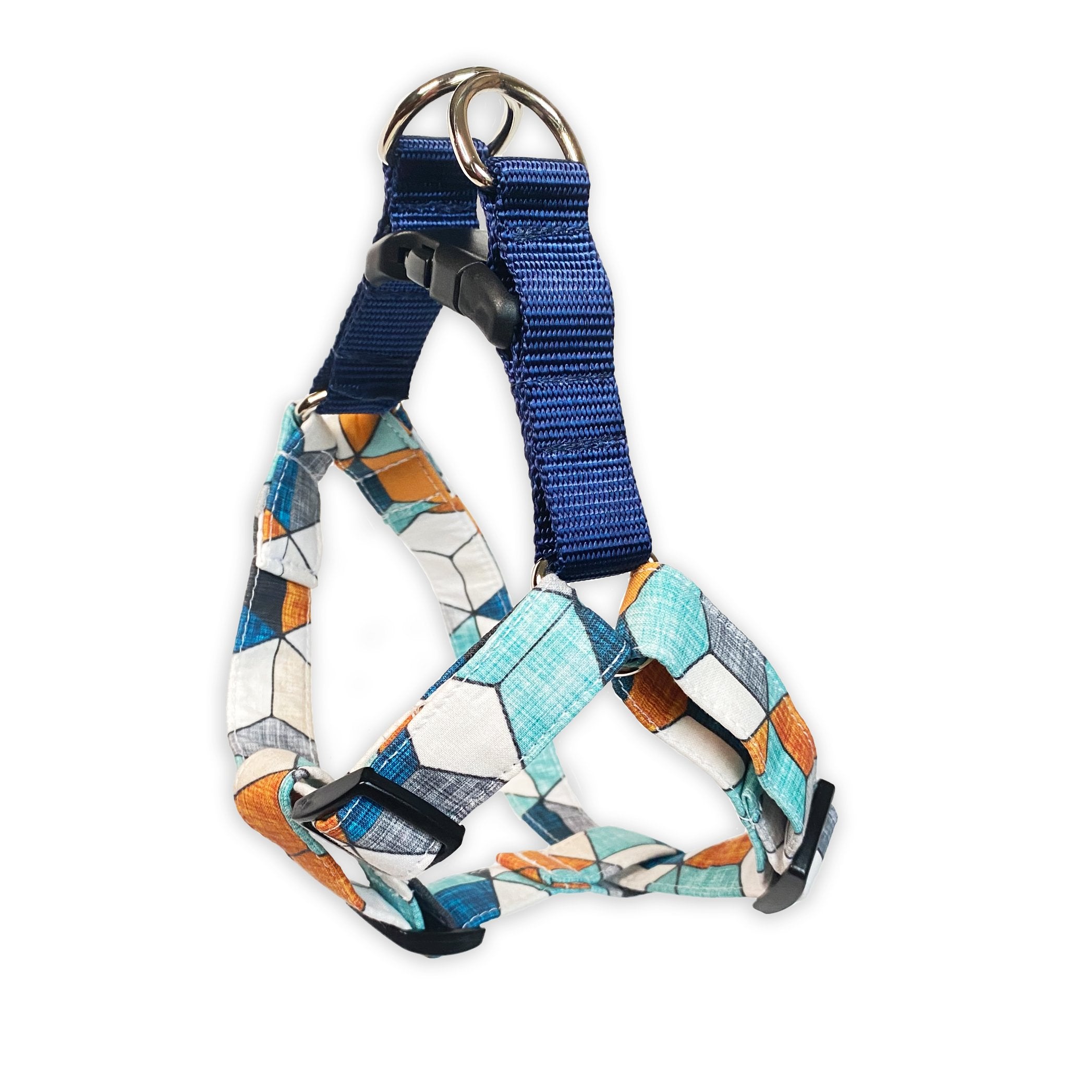 Duke & Fox® step in harnesses are made with comfort, safety, and style in mind. Our step in harnesses can be made in any of our custom dog collar patterns. Duke & Fox® harnesses are great for adding an element of control to your pup that pulls. Our harnesses are easy to slip into and fasten.
