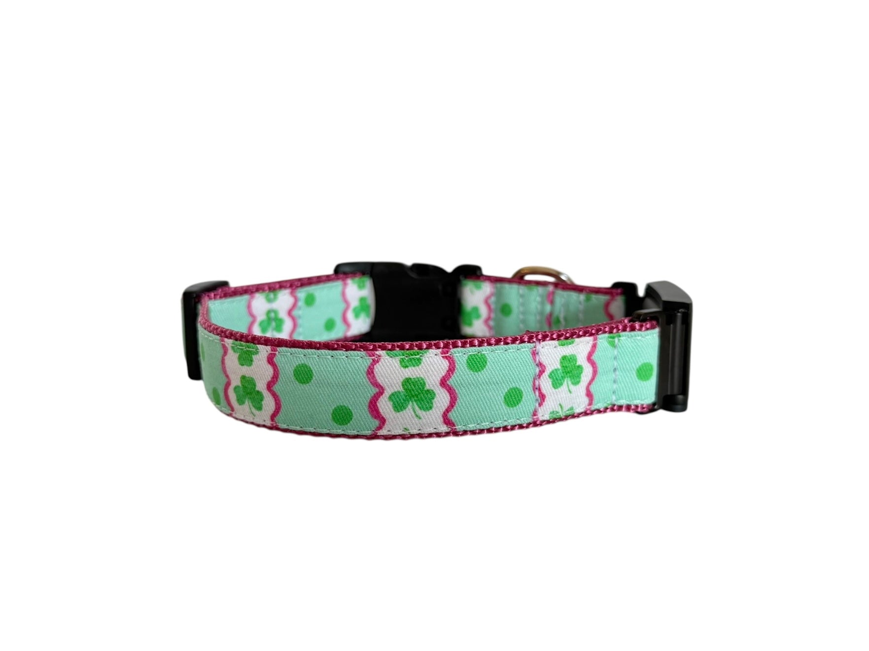 Features: adjustable dog collar made with nylon, renforced fabric, welded d ring and side release buckle.