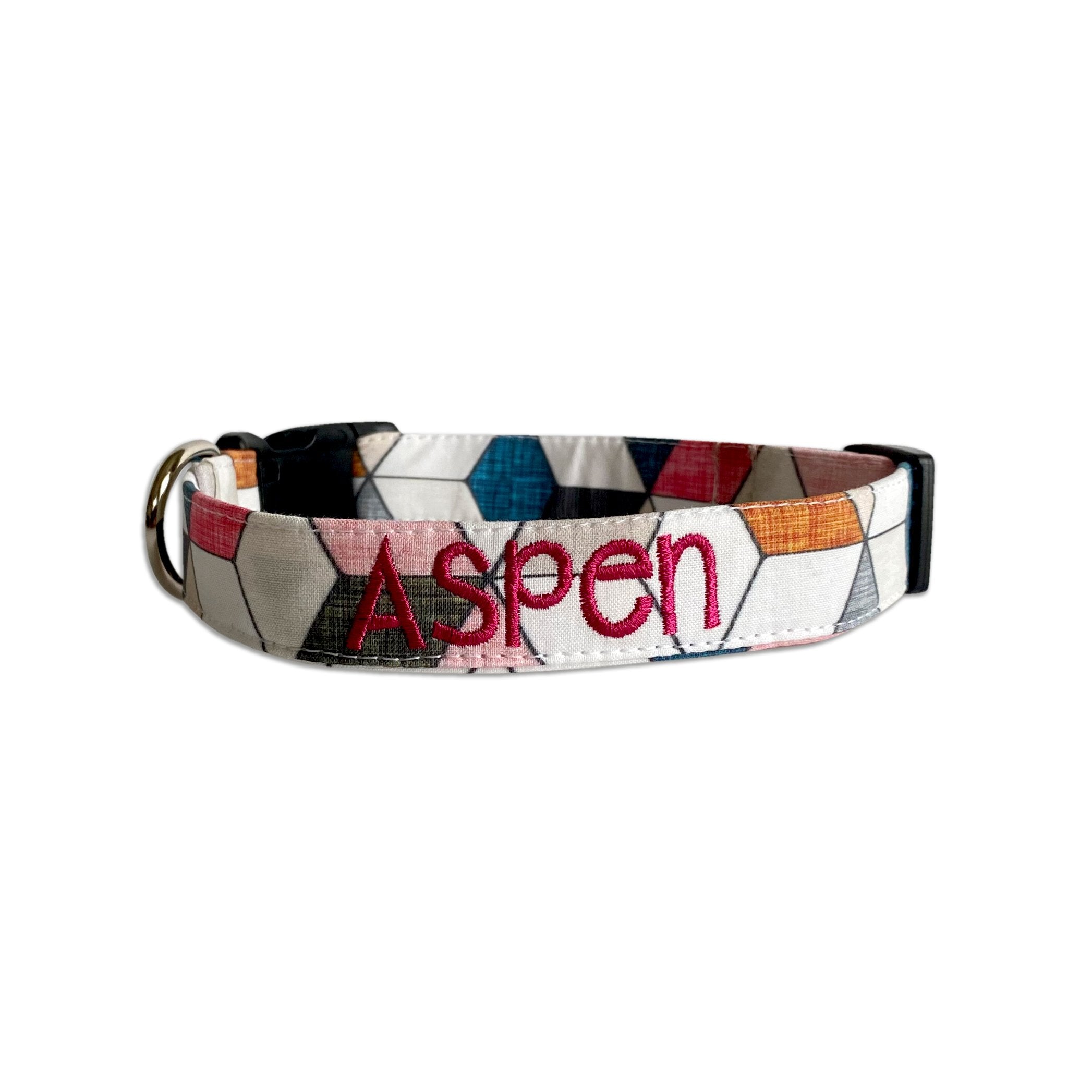 Our collars are functional, stylish, and handmade to stand out and express your pup's personality and your sense of style. Duke & Fox® custom dog collars are made to order and are customized to your exact criteria. You have the option of choosing the pattern, thread colors, font, and buckle style. We also offer matching leashes, bow ties, flowers, and bandanas to complete your look.