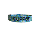 This personalized tropical dog collar features a vibrant palm tree and island-inspired pattern. Handmade and custom, it’s durable, comfortable, and perfect for beach days, summer adventures, and pups with laid-back coastal style.