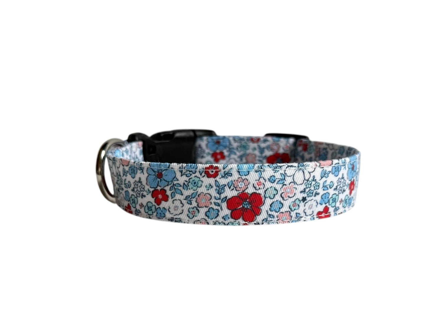 Our collars are functional, stylish, and handmade to stand out and express your pup's personality and your sense of style. Duke & Fox® custom dog collars are made to order and are customized to your exact criteria. You have the option of choosing the pattern, thread colors, font, and buckle style. We also offer matching leashes, bow ties, flowers, and bandanas to complete your look.