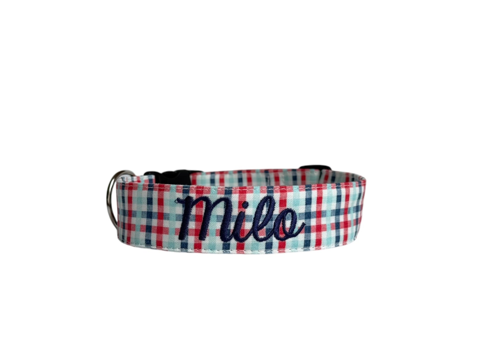 Whether choosing from a traditional dog collar, embroidered dog collar, or engraved buckle dog collar, you’ll find a great selection to choose from. Duke & Fox® personalized dog collars come in a variety of unique styles and patterns. Our embroidered collars and engraved buckle collars also add to your dog's safety and your peace of mind with critical contact information should you and your dog get separated.