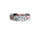Martingales will be made in matching material and are slip on dog collars that are best suited for dogs that slip out of collars easily. When the dog pulls, the martingale tightens so the dog cannot escape. Martingale collars are intended to be used while on walks and not left on unsupervised.