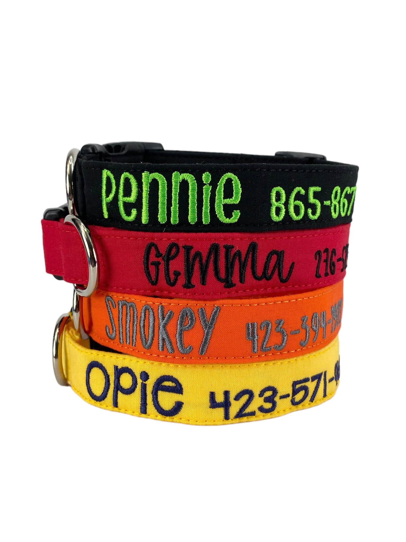 Stay basic and stay safe with our embroidered dog collars in the colors of your choice.